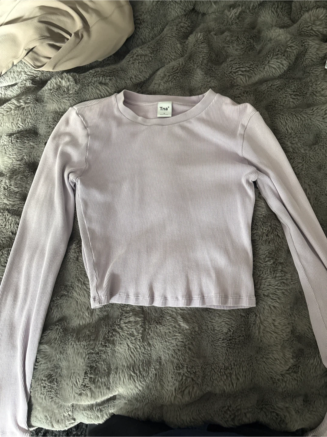 Selling a Tna long sleeve top in size medium! It's a cute and comfy basic that goes with everything. The material is soft and stretchy, perfect for layering or wearing on its own