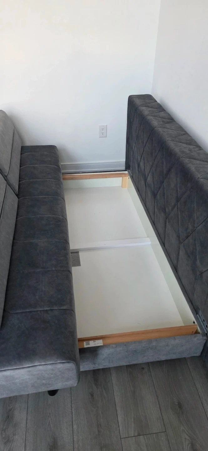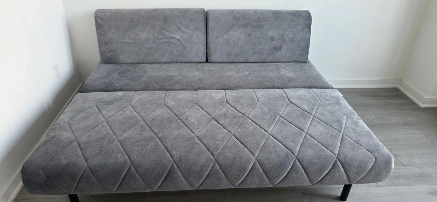 Selling a grey sofa bed in great condition! It's perfect for small spaces or as an extra bed for guests. The sofa easily converts into a bed, making it super convenient. It has a sleek design and is made of a soft, comfortable material. It's a great addition to any living room or guest room!