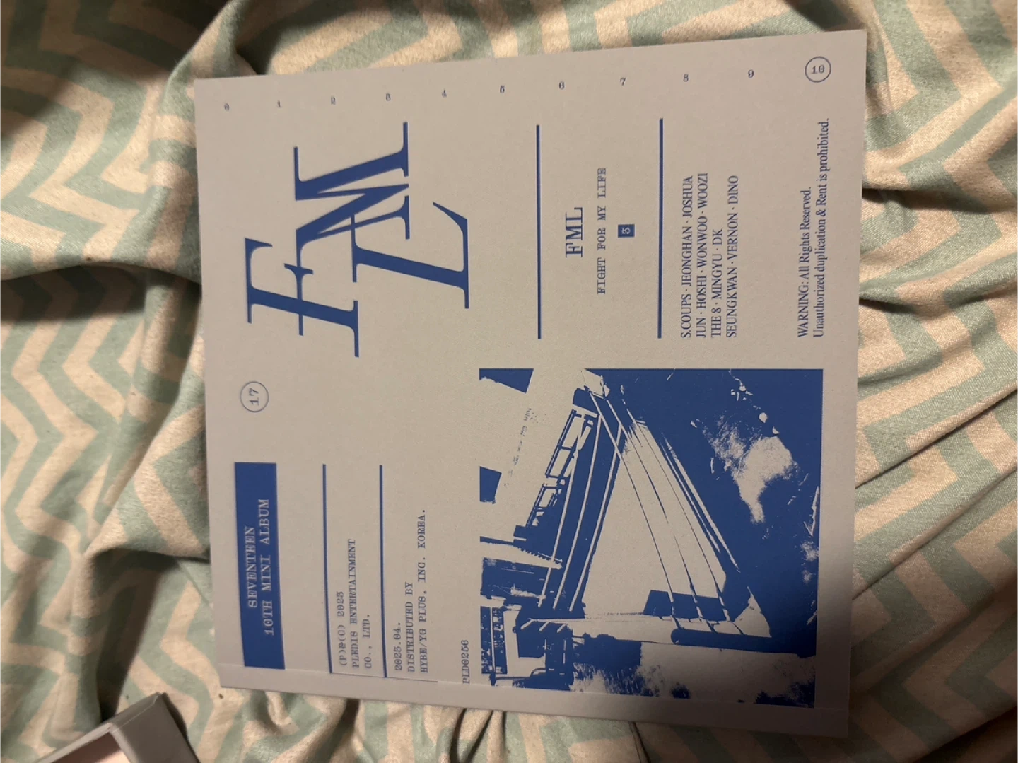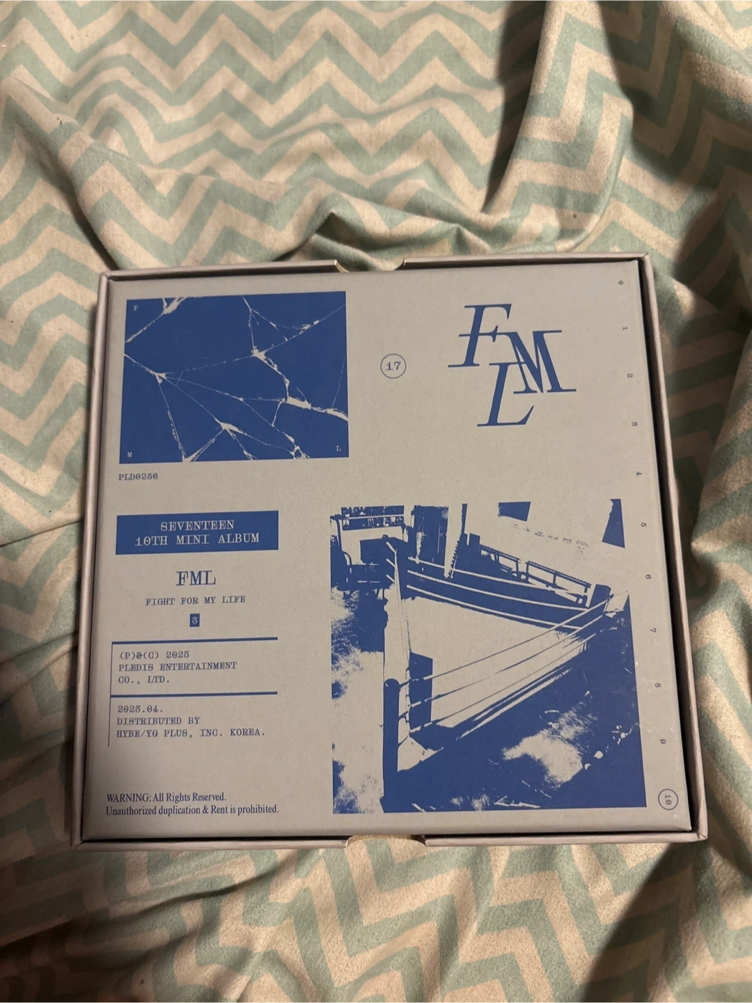 Selling Seventeen's 10th mini album, FML! It includes the CD, poster, sticker(s