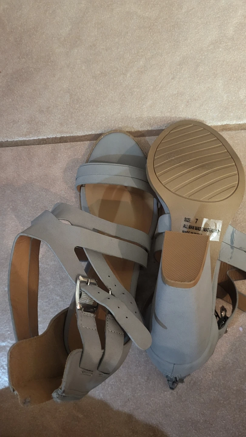 Selling a pair of stylish grey heels in women's size 7. They're in great condition just a small stain and ready for a new home!