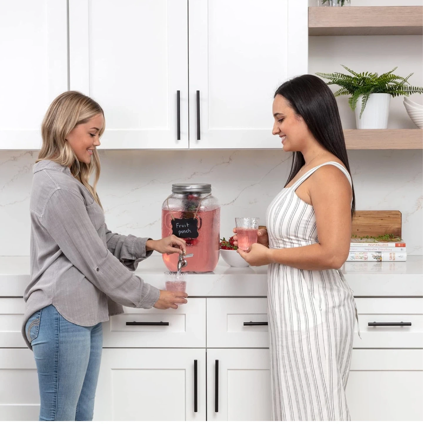 This is a 2-gallon glass drink dispenser from Le Raze Decor! It comes with a chalkboard and marker so you can label your beverages. Perfect for parties or everyday use!