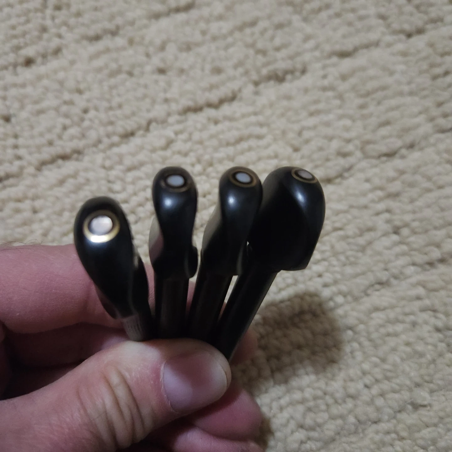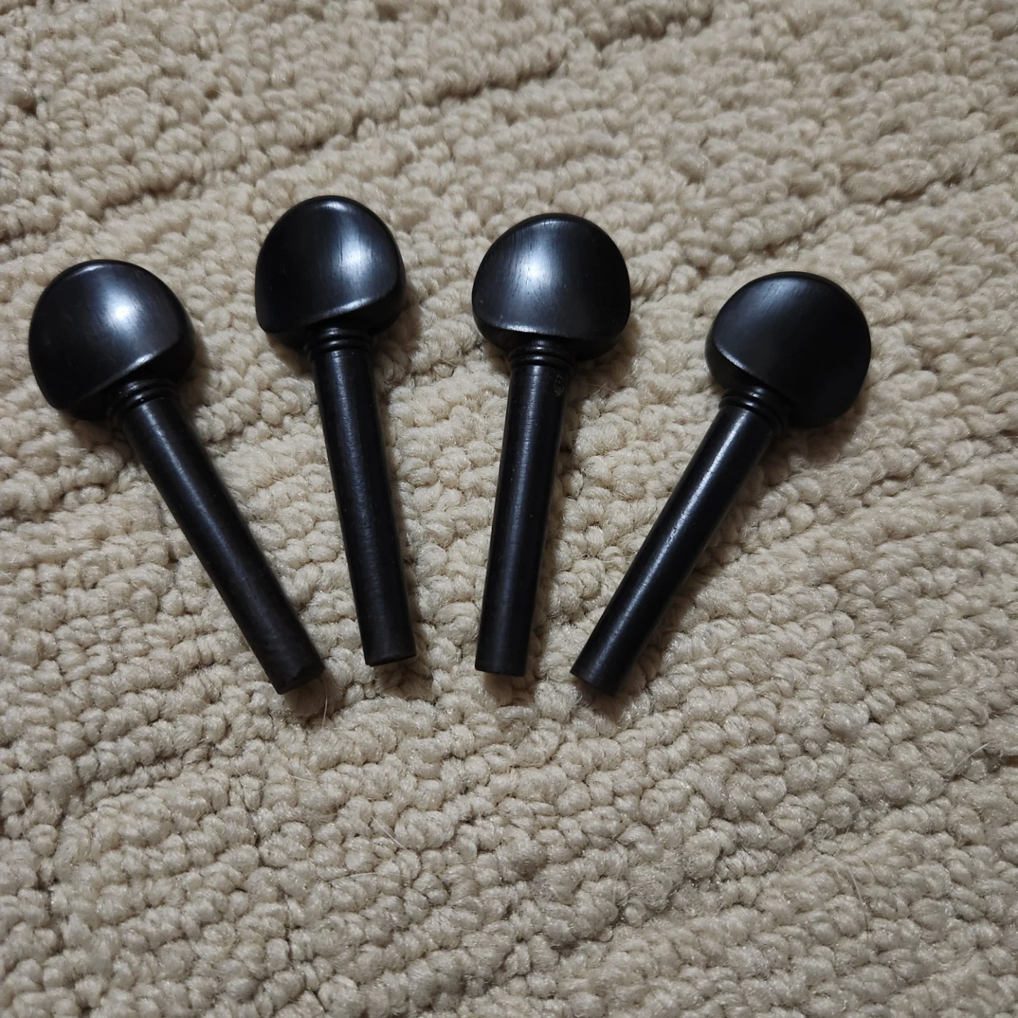 Selling a set of violin tuning pegs in black. They are new never installed and measure approximately 7-8 cm in length. Perfect for replacing worn or broken pegs!