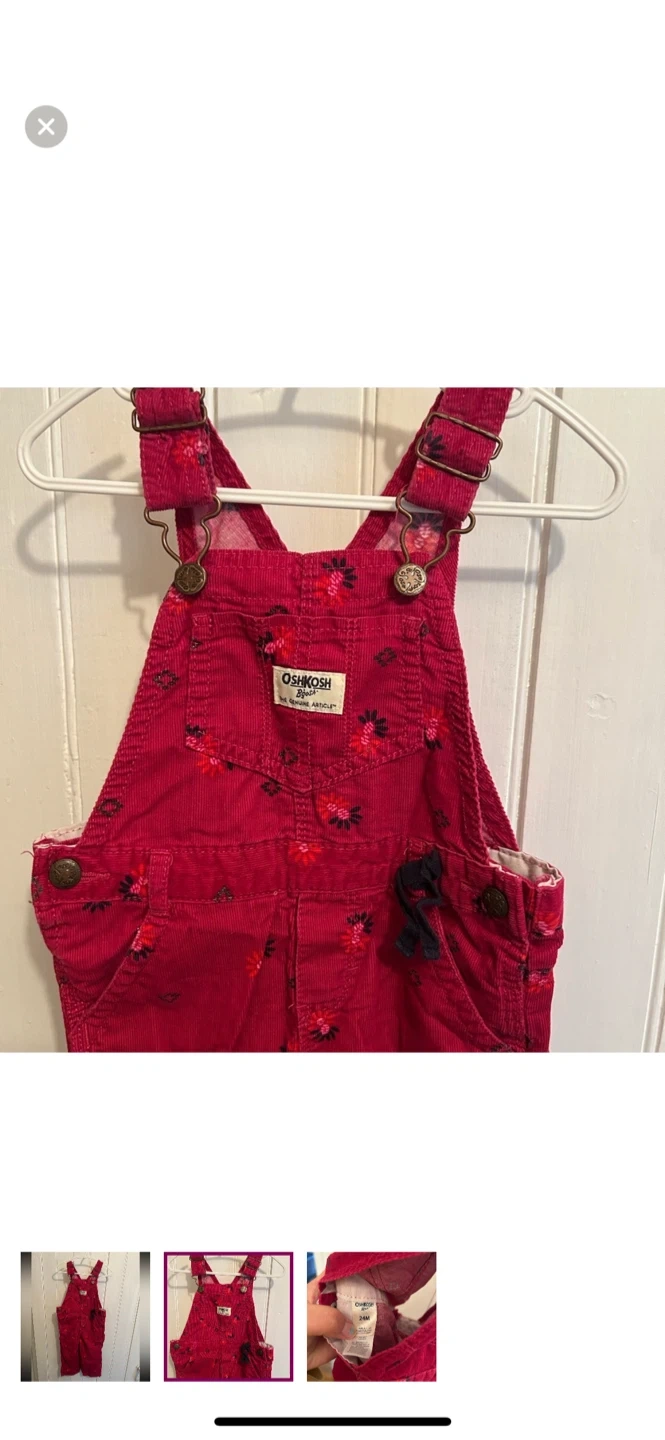 12Oshkosh brand. Corduroy overalls. Pink floral print. Size 24m. Brand new condition $15 Pickup Kincardine area or Peterborough but I can arrange delivery in port Elgin, walkerton-Durham, wingham-listowel-kw/cambridge/guelph, goderich-bayfield, & Arthur-Orangeville-Newmarket-Lindsay AREAS.