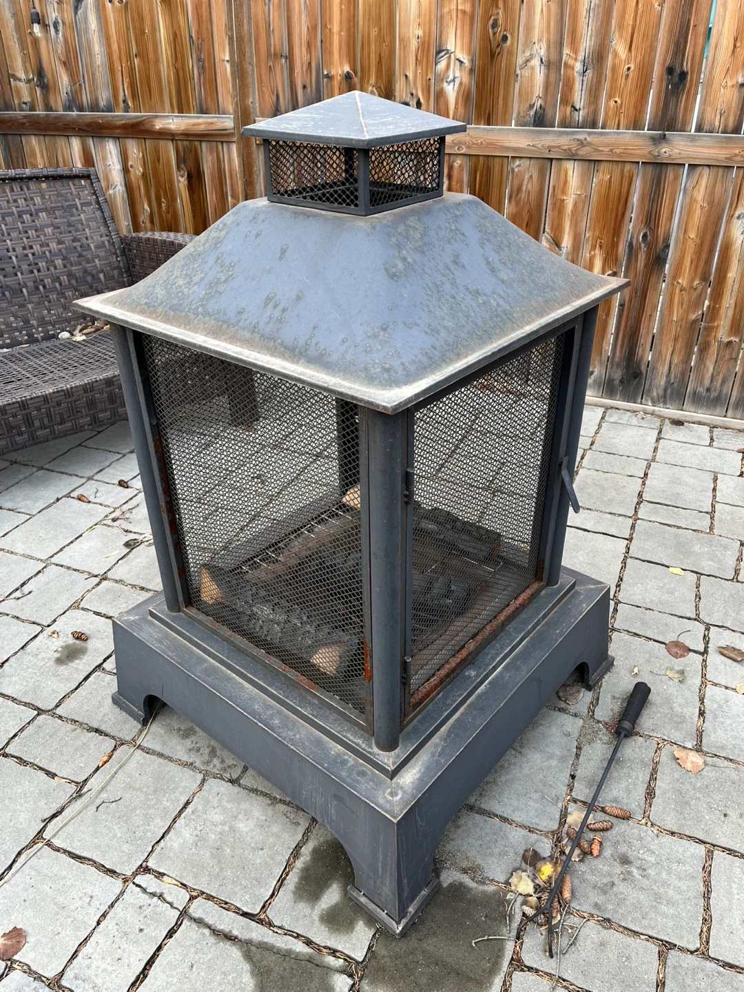 Selling a metal fire pit, perfect for backyard use. It has some rust and signs of wear, but it's still functional and ready to keep you warm on cool evenings. Retails for 250$ selling for 120!