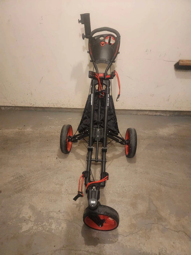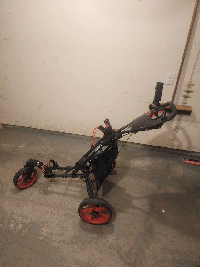 Tour Trek push cart, excellent condition! wheel can lock straight & the break works Included is the Seaforth Slicker rain cover $130 OBO