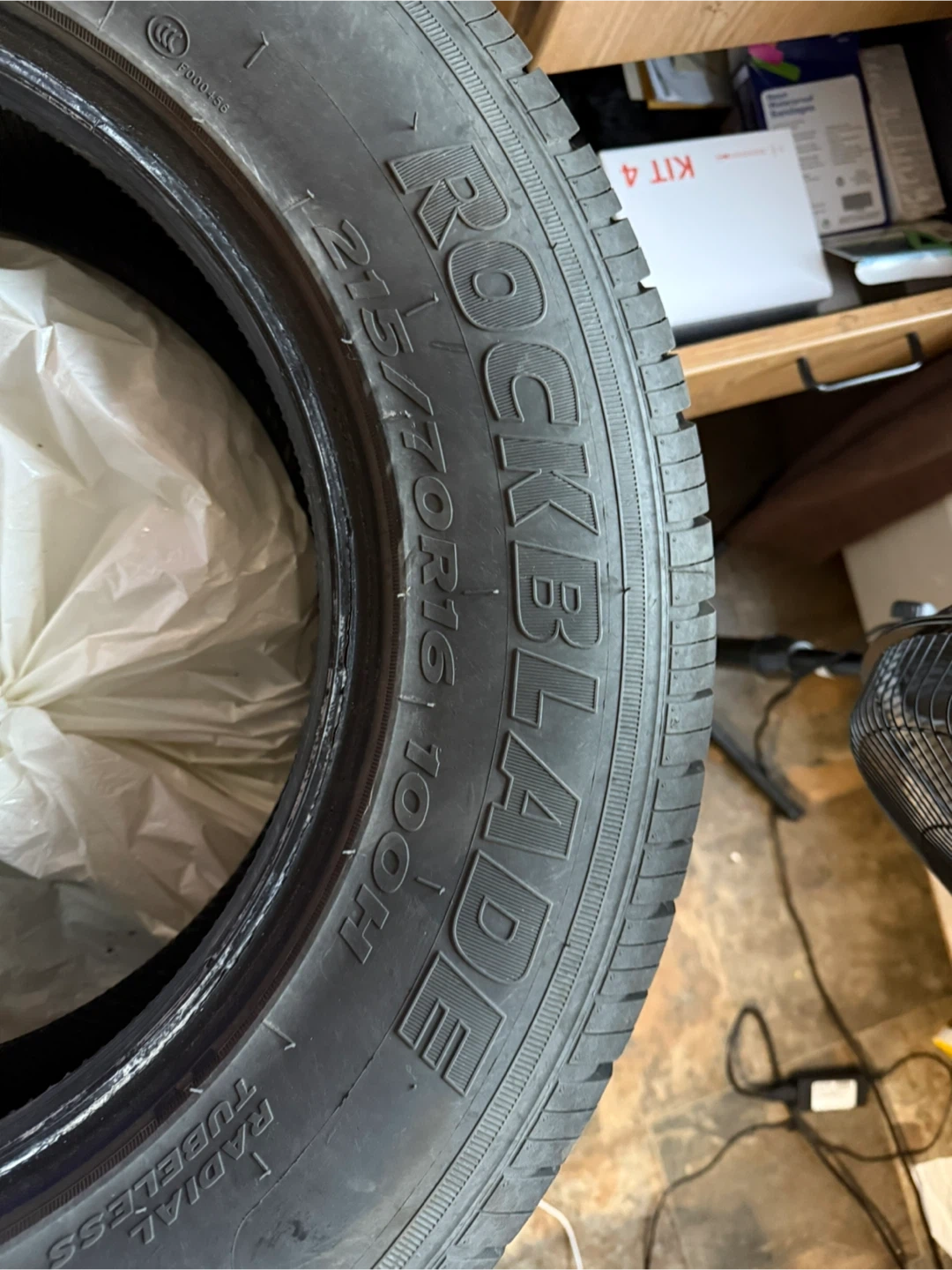 Buy & SellRockBlade 215/70R16 100H Tires - Set of 4RockBlade 215/70R16 100H Tires - Set of 4$225Selling a set of four RockBlade tires, size 215/70R16 100H. They are in great condition and ready to be used! All season1 chats·1 favorites·117 viewsSELLERverifiedLouisBelvedere650 reviewsWHERE TO MEETCheck Location