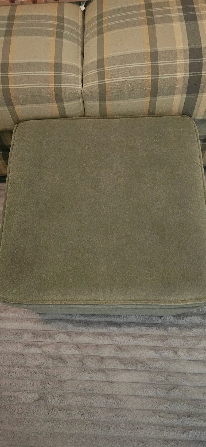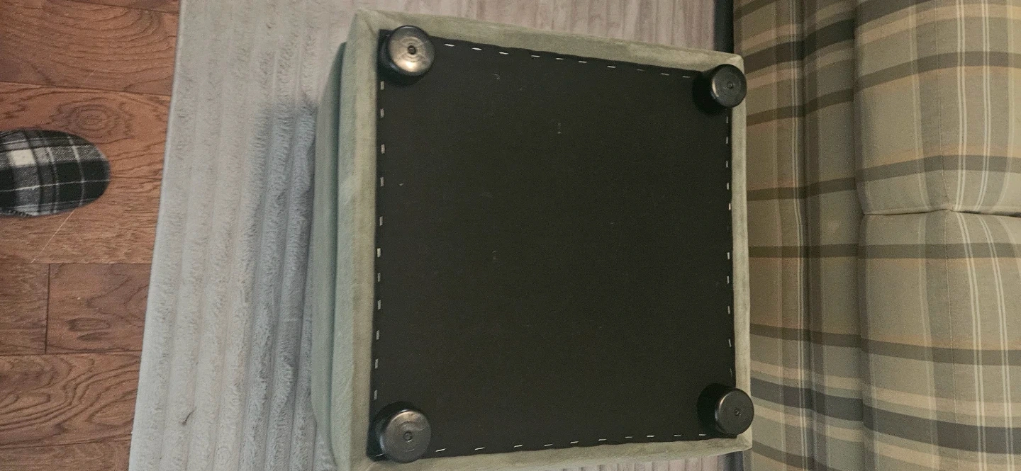 Here's a green storage ottoman! It's in great condition and would be perfect for extra seating or storage in your living room or bedroom