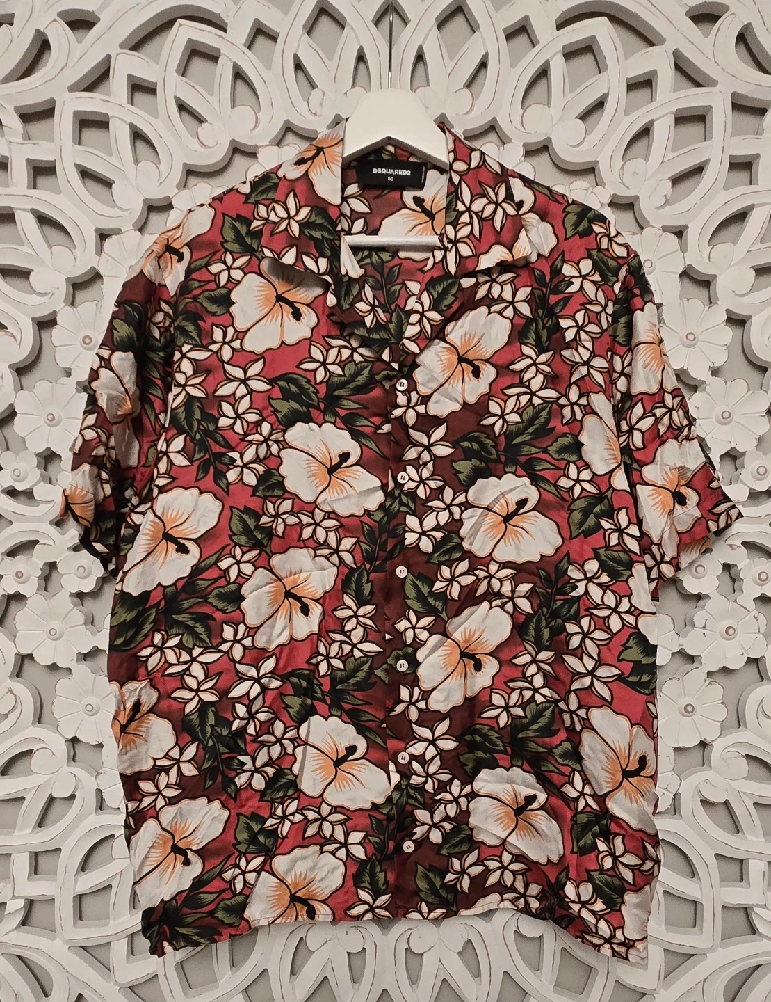 Selling a Dsquared2 Hawaiian floral-print shirt in size 50. It's in great condition and has a vibrant floral design.