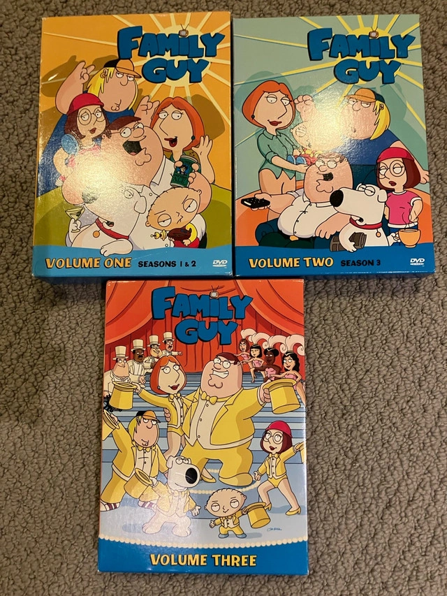 Buy & SellFamily Guy DVDs volumes 1-4 (seasons 1-4). 10 discs totalFamily Guy DVDs volumes 1-4 (seasons 1-4). 10 discs total$10Three box sets, together.WHERE TO MEETCheck LocationView MapSELLERBHCentral100 reviews0 chats·0 favorites·1 views