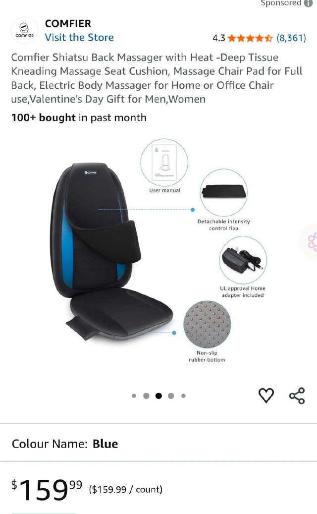 COMFIER Shiatsu Back Massager with Heat – Deep Kneading, Adjustable Intensity, and Vibration Seat | Blue