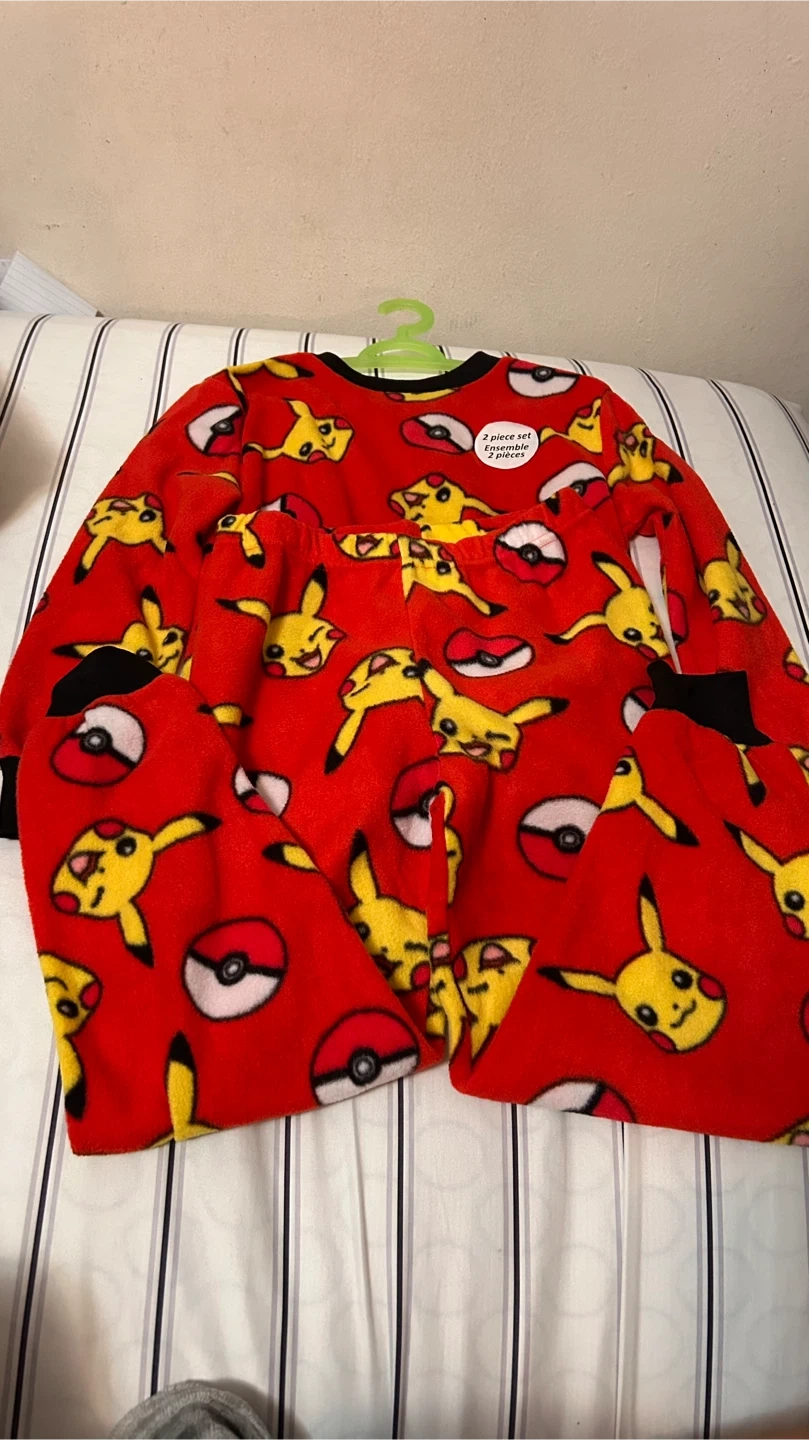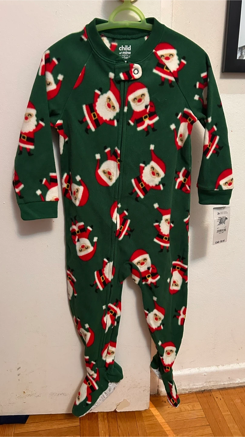 330Two sets of cozy pajamas for your little one! One Pokemon 2-piece set, size XS 4-5 years. The other is the Child of Mine (Carters) footed pajama with a festive Santa Claus pattern, size 2T.