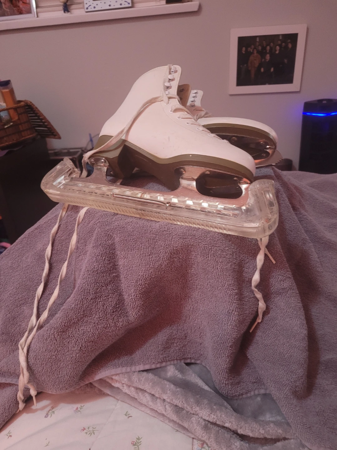 Selling a pair of Glacier 120 ice skates for women. They're a size 9 1/2 and in good condition for hitting the ice! The skates come with blade guards.