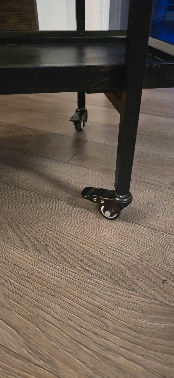Selling a handy black bar cart! It's got a sleek design and comes with wheels, making it easy to move around. Perfect for entertaining or just adding a bit of extra storage space.