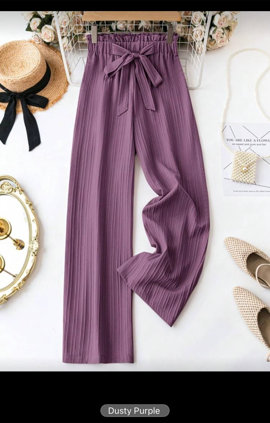 Selling SHEIN LUNE ladies' solid colour long pants. They're a lovely dusty purple colour, perfect for daily wear!
