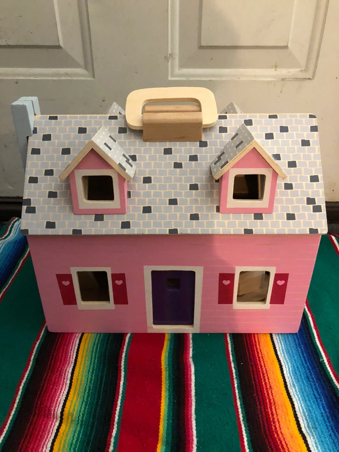 Selling a Melissa & Doug Fold & Go Wooden Dollhouse! LIKE NEW !11 pieces of wooden furniture. It also has sturdy carrying handles for easy play access. Recommended for ages 3+
