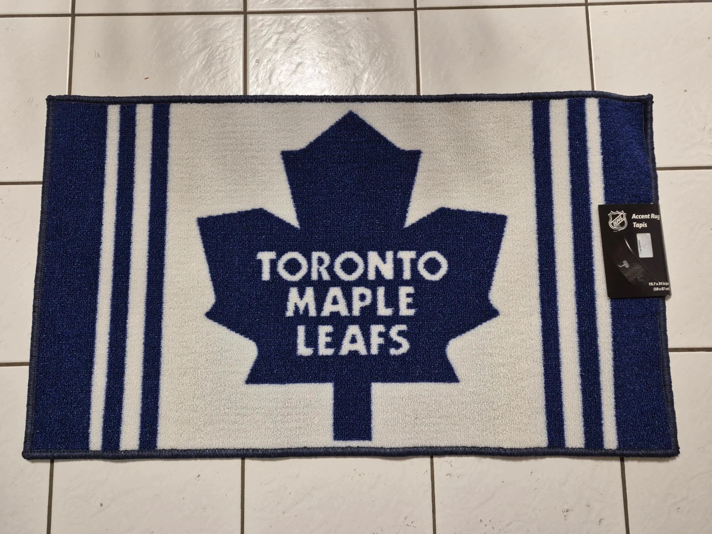 The rug measures 19.7 x 34 inches (50 x 87 cm). Perfect for any Leafs fan!