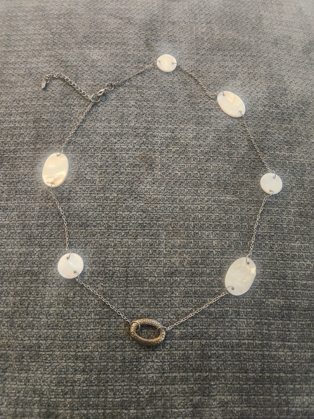 A lovely necklace featuring mother of pearl accents and a silver chain! It's in great condition and ready to be worn