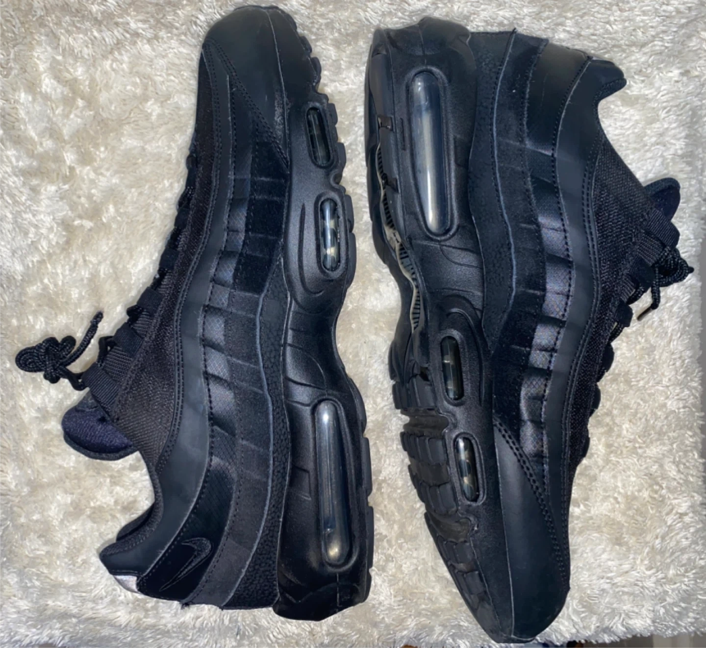 Selling a pair of Nike Air Max 95 in size US 13. Sleek black /Dark grey reflective colour way. Perfect for everyday wear or adding to your shoe collection!