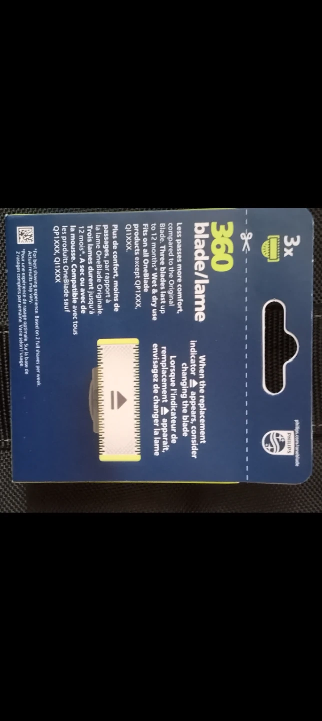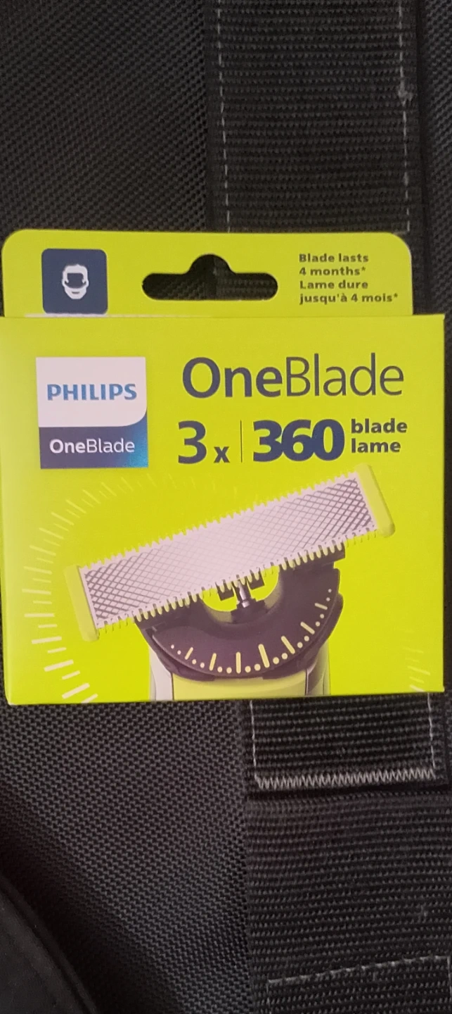 Selling a pack of Philips OneBlade 360 replacement blades. This pack includes 3 blades that provide less pass more comfort compared to the original blades. Each blade lasts up to 4 months for wet & dry use. Fits on all OneBlade products except QP1XXX, QI1XXX