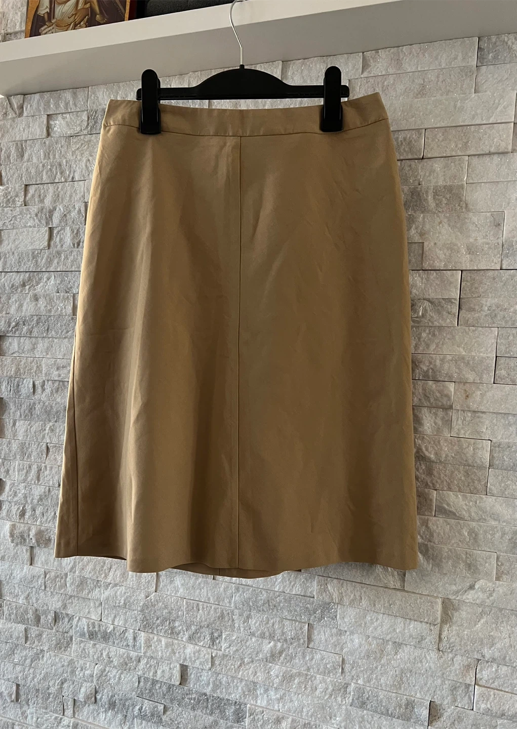It's a size 9/10 and made of 70% polyester, 27% viscose, and 3% elastane