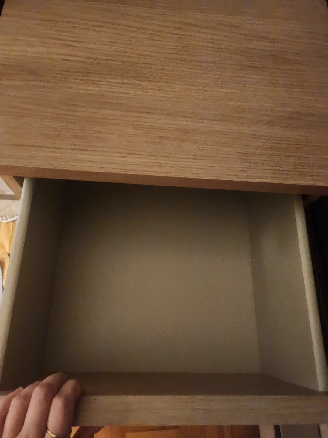 The drawers open and close just fine but the top drawer has some more resistance in sliding than the bottom drawer.