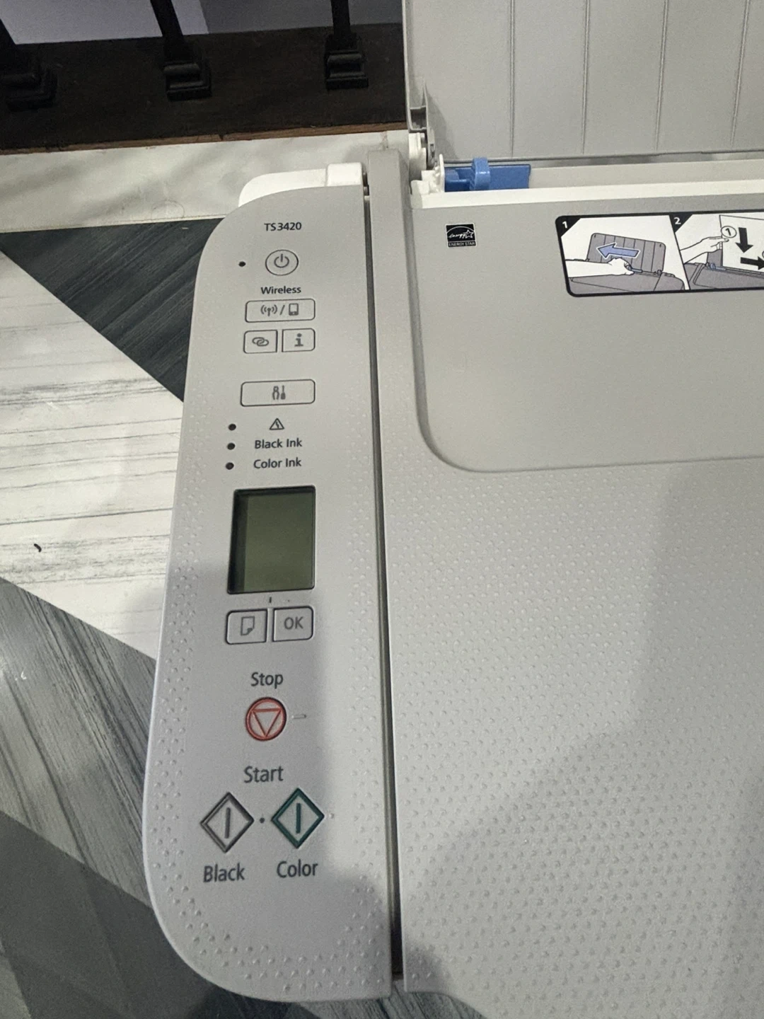 Selling a Canon PIXMA TS3420 wireless all-in-one printer. It can print, copy, and scan. Comes with the original box!