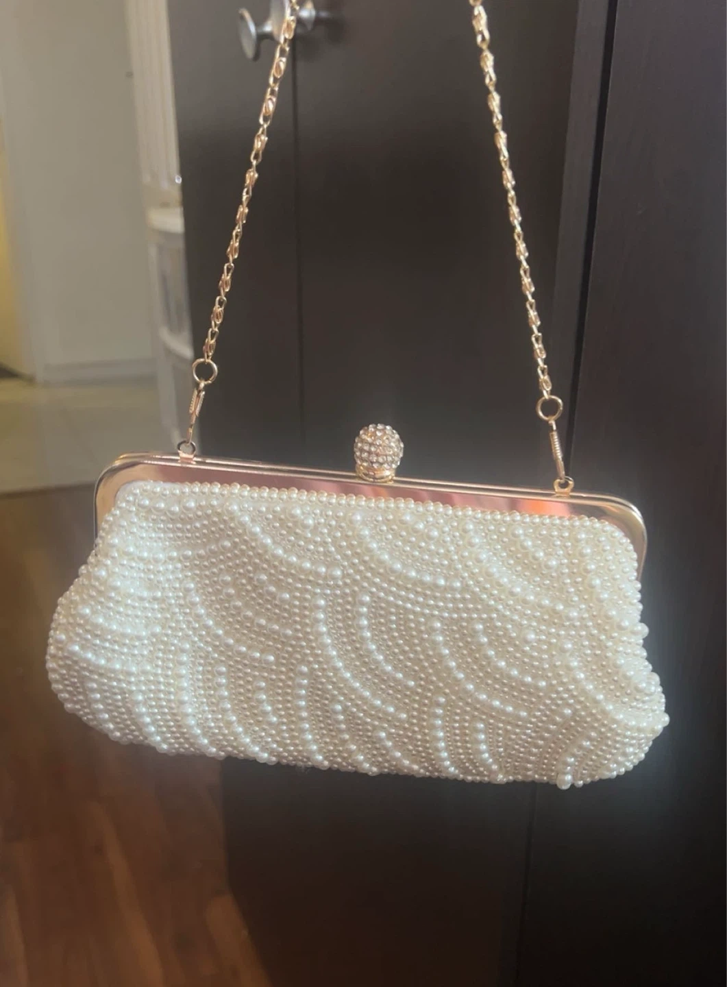 782Elegant pearl beaded clutch with a gold-tone chain strap, perfect for special occasions If you are interested message!