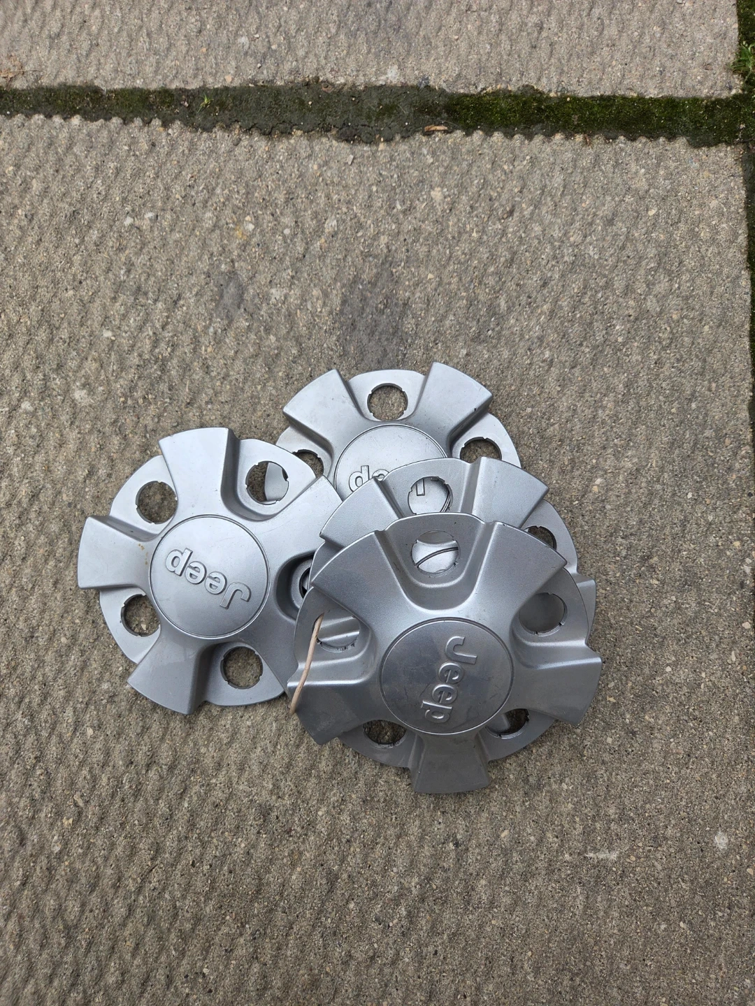 Selling a set of four Jeep hubcaps. They have some signs of wear, as pictured, but are still in good shape and ready to use!
