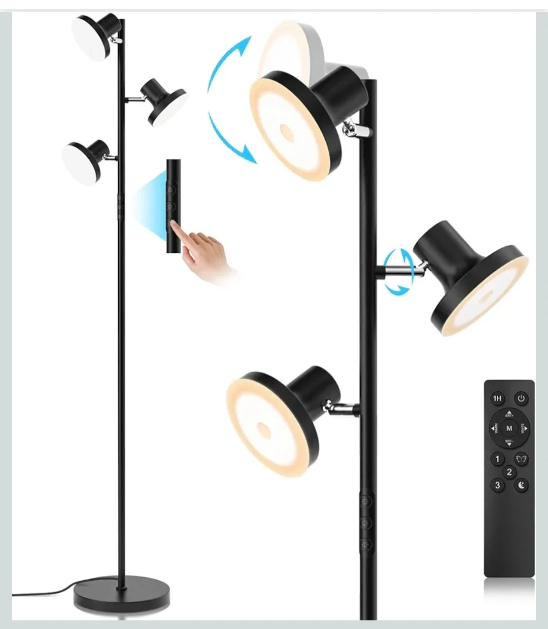 Selling a Sibrille LED floor lamp in excellent condition! It features adjustable lighting with individual switches, so each light can be turned on/off and dimmed individually. You can also adjust the colour temperature, with options for 2700K (warm white), 4000K, 5000K (cool white), and 6500K (daylight white). The lights are adjustable with 350° rotation and 180° vertical up and down movement. Comes with a remote control!