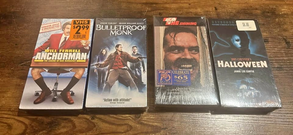 5Vintage horror and comedy vhs tapes cult classics $70 for the lot I also have them listed on my marketplace profile if you want seperate pricing! So feel free to take a look. $70 Halloween tv cut The shining Bullet proof monk Anchorman Pickup in new west