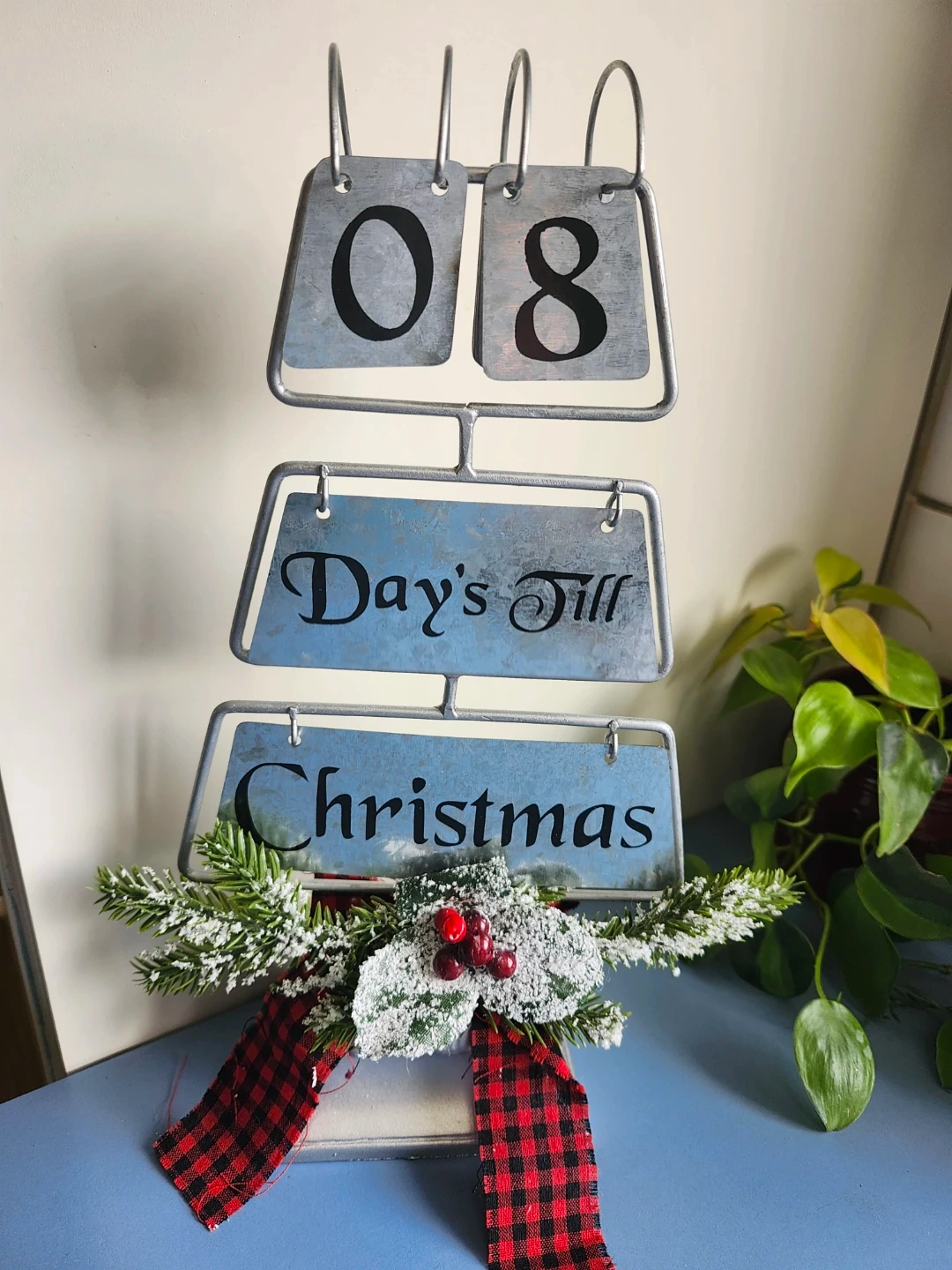 Get ready for the holidays with this cute Christmas countdown calendar! It features a rustic, galvanized metal design with "Days Till Christmas" and a little festive decoration.