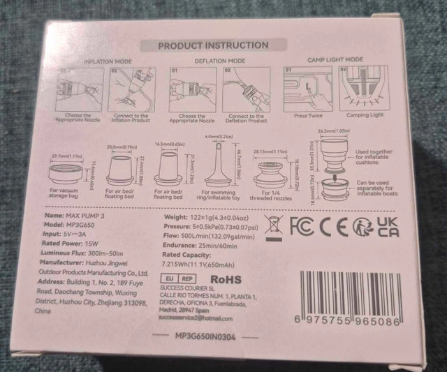 122I'm offering a brand-new Flextail Max Pump 3, a versatile mini air pump designed for quick inflation and deflation with a 500L/min flow rate. This compact and lightweight pump features a USB Type-C charging port, making it perfect for camping, outdoor activities, and travel. It also includes a built-in camping light with multiple modes. Key features include: * 500L/min flow rate for fast inflation * Lightweight and portable design * USB Type-C rechargeable * Built-in camping light * Multiple nozzles for various applications If the ad's still up, the pump's ready for action! Pickup in Brampton near Sheridan college Davis campus