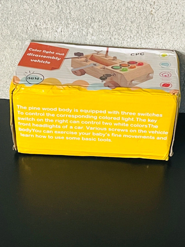 122This CPC Color Light Nut Disassembly Vehicle is fantastic for enhancing development and promoting young children's exploration and problem-solving skills. It has been gently , and is in excellent condition, ready for a new home! Here are some of the features: * Hand-eye coordination * Life skills * Patience development * Increase confidence Retail price is close to $50 pick up is in Brampton near Sheridan College