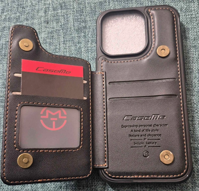 122Protect your iPhone 16 Pro with this stylish and functional CASEME wallet case, featuring a sleek black design with detailed stitching, secure card slots, and robust drop protection. This case is in Brand new condition and ready to keep your phone safe and organized. Here are some key features: * Wallet and case combination * Multiple card slots * Full access to all ports * Shockproof design If you're reading this, then good news, it's still available! Pickup in Brampton near Sheridan college Davis campus