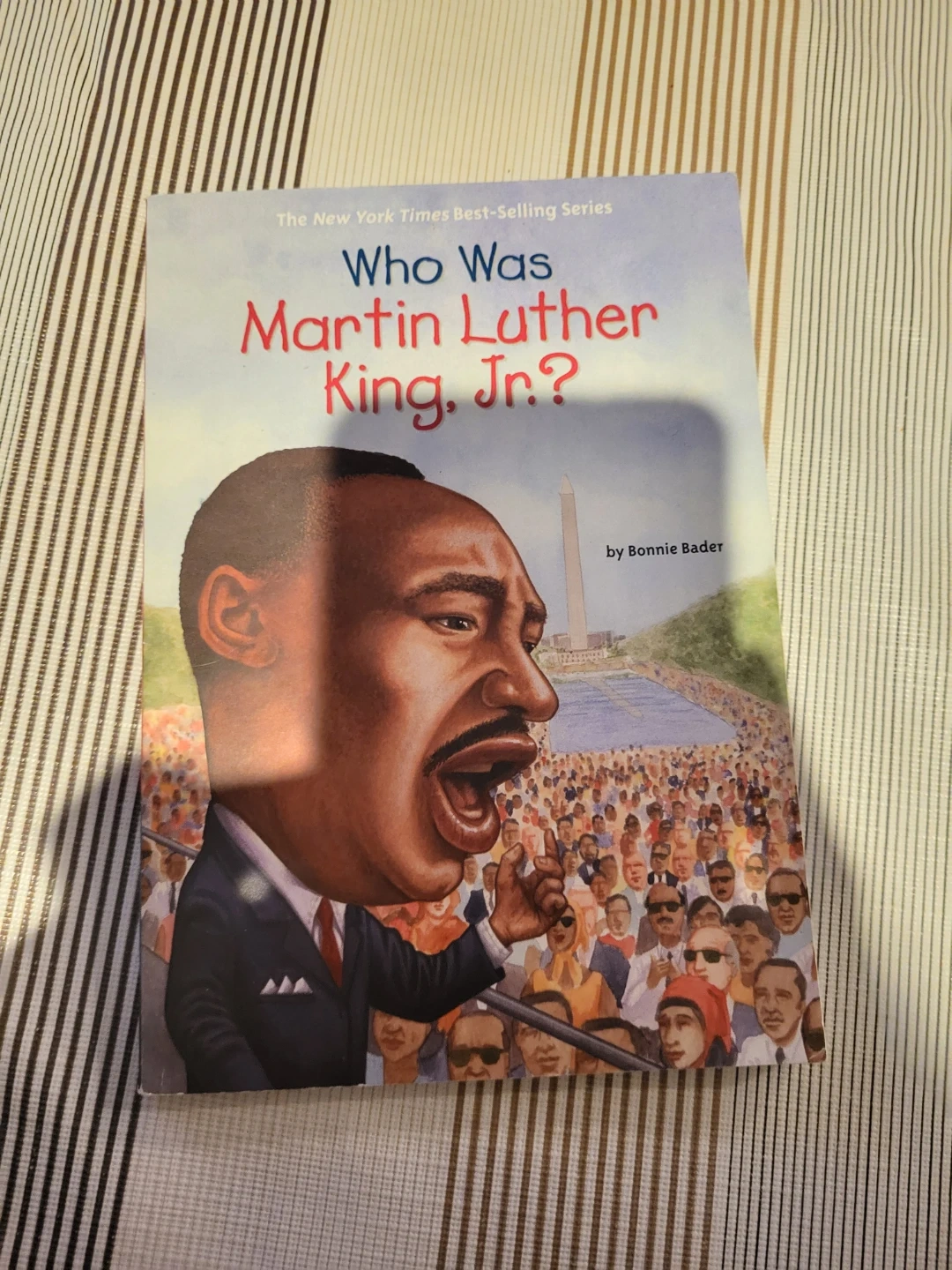 Selling a copy of 'Who Was Martin Luther King, Jr.?' by Bonnie Bader. It's part of The New York Times Best-Selling Series and is a nonfiction book. Great for young readers interested in history!