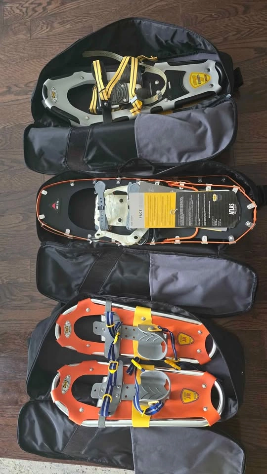 10Used only twice, these snowshoes are virtually brand new and ready for serious winter terrain. Key Technical Features: Advanced 360° Traction Frame design delivers edge-to-edge grip on steep slopes and uneven terrain. Ballistic-grade decking for high durability and reduced flex in deep snow and varied conditions. Precise and secure Paragon binding system (mesh strap version) offers excellent foot control and comfort in cold, icy conditions. Built-in Ergo Televators (heel lifts) to reduce calf fatigue and increase efficiency during uphill climbs. Lightweight aluminum frame (7000-series) with steel crampons provides excellent traction and support for technical snowshoeing. Suitable for challenging terrain—mountain trails, technical backcountry, steep ascents.