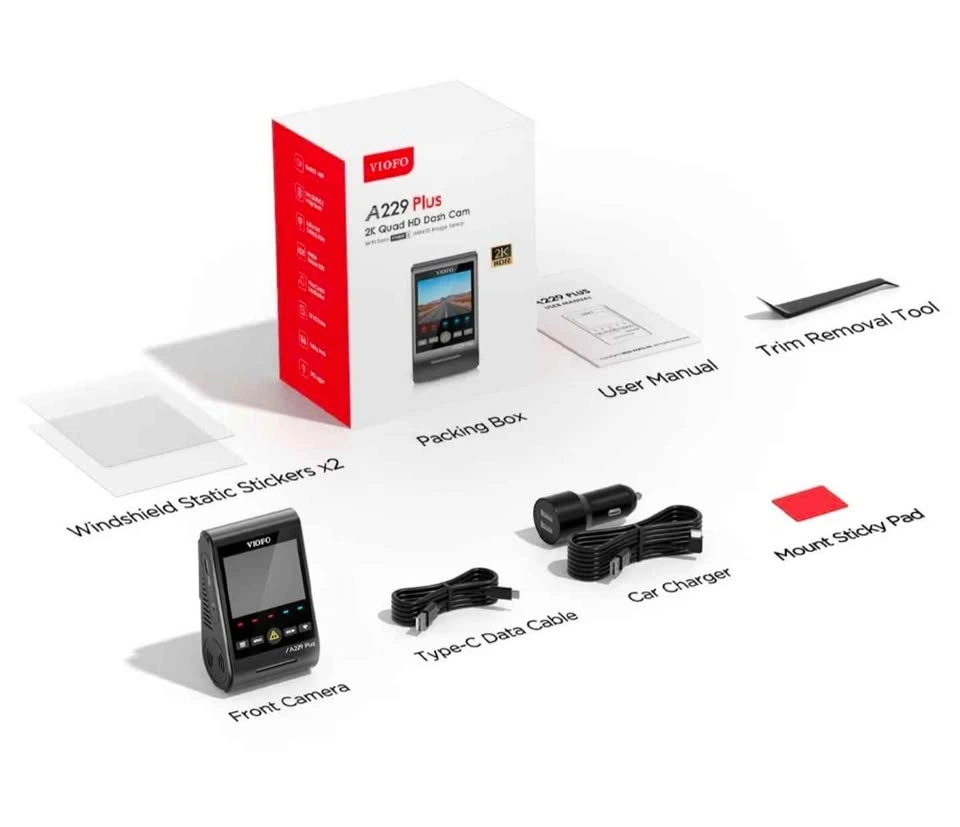 VIOFO A229 Plus 1CH 2K HDR Front Dash Cam with Sony STARVIS 2 IMX675 Sensor Voice Control 5GHz WiFi Ultra-Precise GPS.