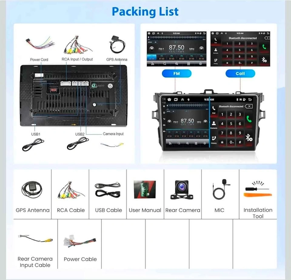 Android Car Stereo for Toyota Corolla 2009-2013, Wireless Carplay Android Auto Car Radio, 9'' Touch Screen Head Unit with Bluetooth GPS Navigation Mirror Link WiFi FM/RDS DSP Backup Camera SWC