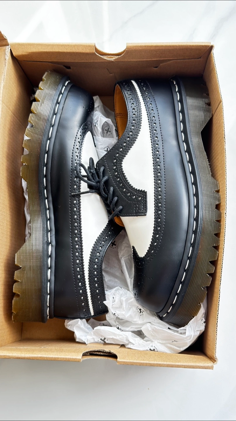 Selling a pair of Dr. Martens 3989 BEX Brogue shoes in men's US size 9. These stylish shoes feature a classic black and white design . The box is included!PRICE IS FIRM 🙂