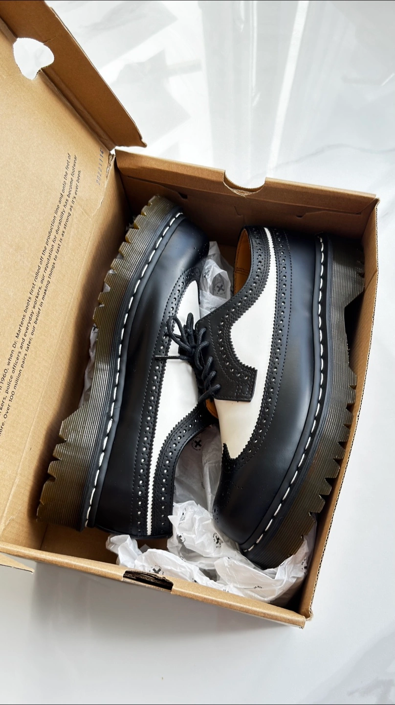 Selling a pair of Dr. Martens 3989 BEX Brogue shoes in men's US size 9. These stylish shoes feature a classic black and white design . The box is included!PRICE IS FIRM 🙂