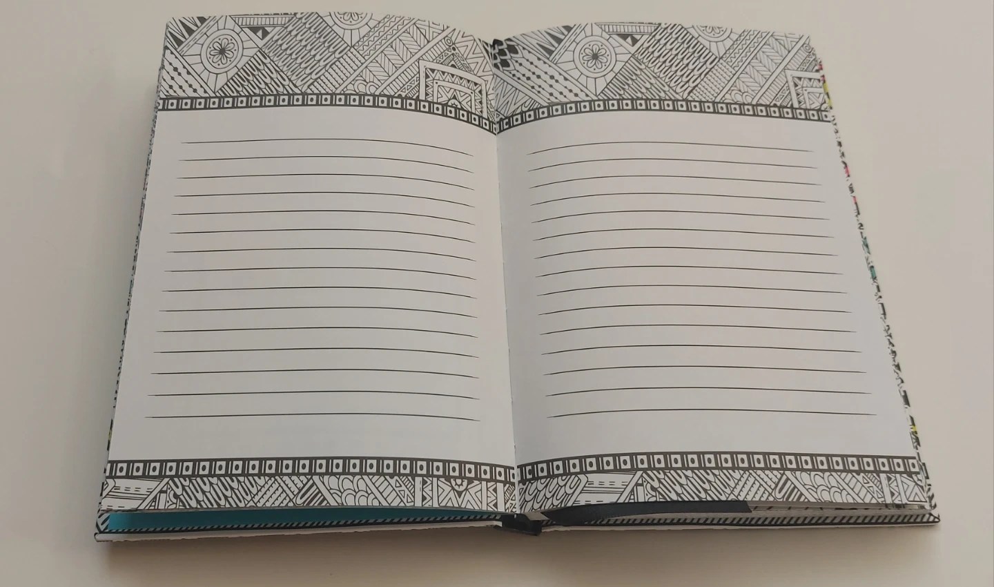 This is a brand new coloring journal! It has 160 pages for all your journaling and colouring needs!
