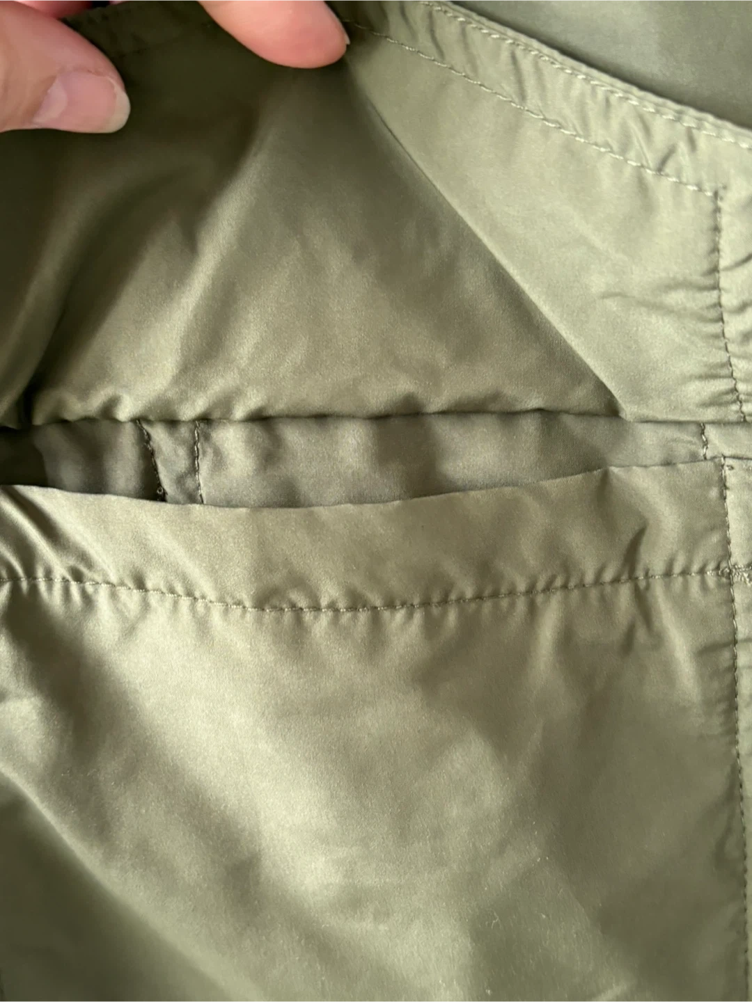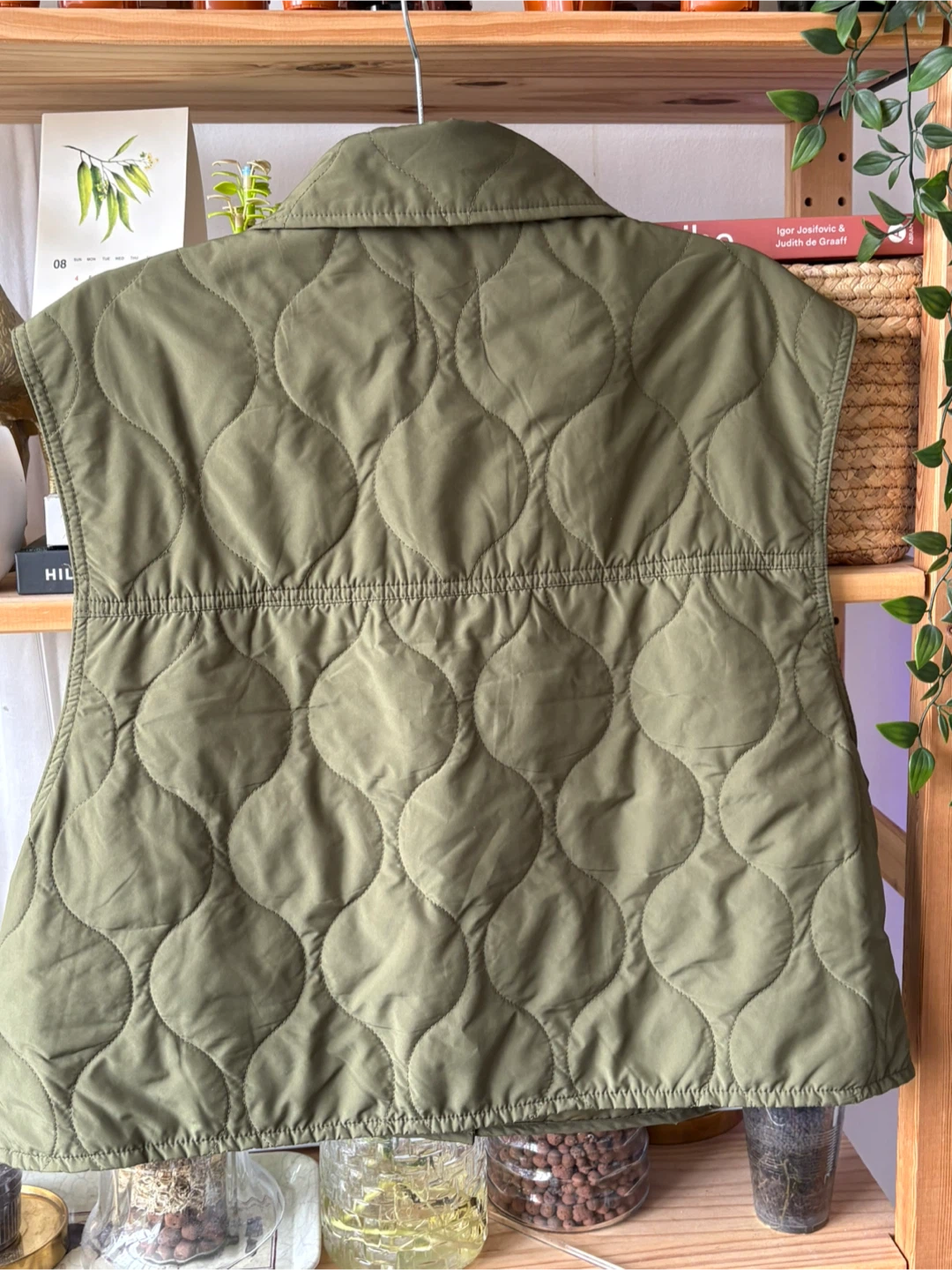 Olive green quilted vest from H&M. It's in great condition and perfect for layering! Features a collared neckline and front pockets.