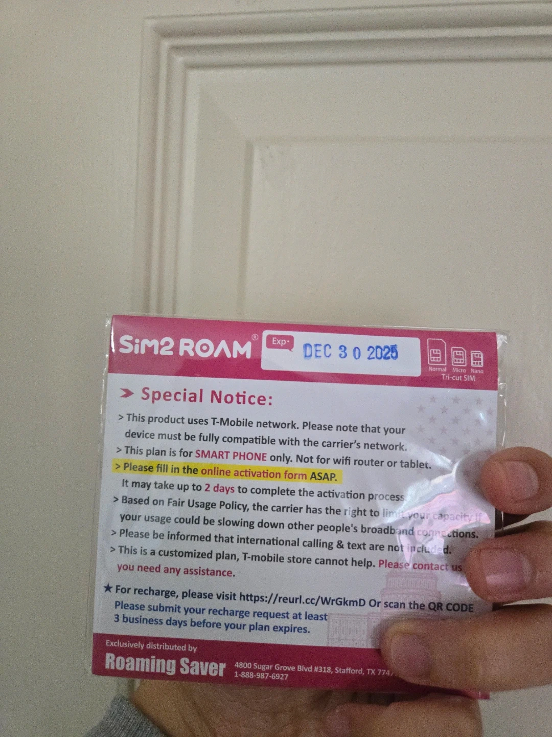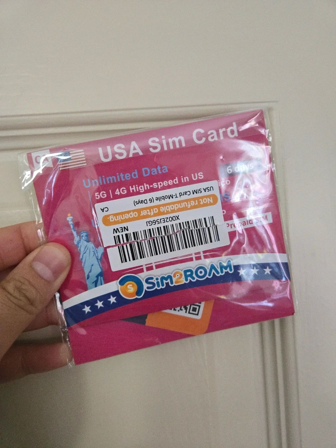 Physical sim card that gives you unlimited data on the T-Mobile network for up to 6 days. Great for a short work trip or vacation in the USA!
