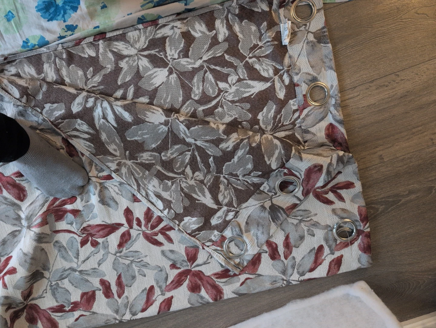 Selling a set of curtains with a lovely floral pattern! They feature a mix of red and grey leaves on a light background. The curtains are in great condition and ready to add a touch of style to your home...