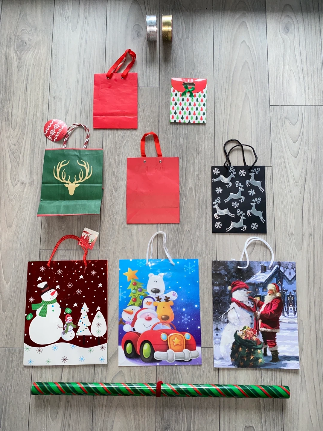 219Selling a bundle of Christmas supplies - ✅8 Gift Bags of different sizes and patterns ✅1 Roll of wrapping paper ✅2 brand new rolls of Hallmark decorative ribbons, each has 3 patterns to choose from Perfect for all your gift-giving needs! ❤️ Check out my other listings for great deals!