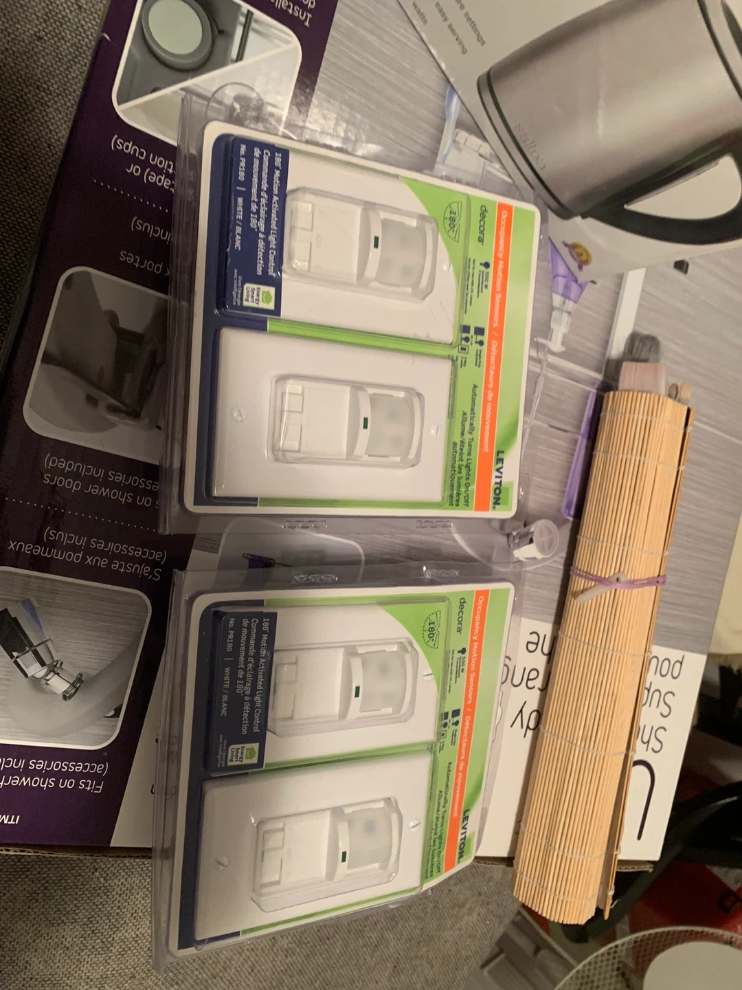 25Selling two Leviton Decora occupancy motion sensors. They easily replace standard switches and automatically turn lights on/off. Ideal for homes with children, physically challenged or older adults. They have a 180° field of view. I have 3 or 4 packs total!! $35 each