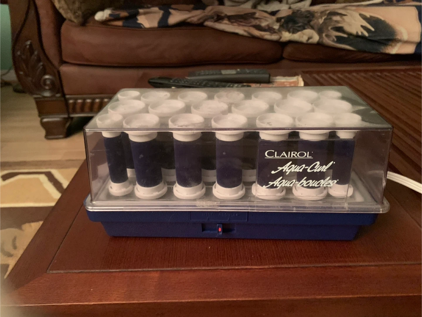 Selling a Clairol Aqua-Curl Aqua-boucles hair setter! It comes with a variety of roller sizes for different curl types. Perfect for achieving bouncy curls at home