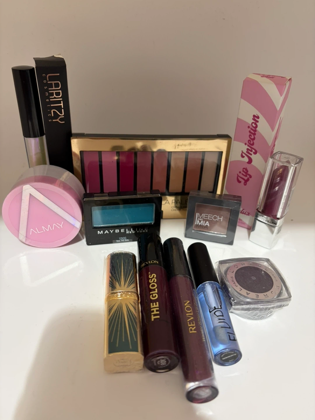 Selling a variety of makeup items! This lot includes products from brands like Almay, Revlon, Laritzy, and others. Perfect for trying out new looks or stocking up on your favorites! All items are new.