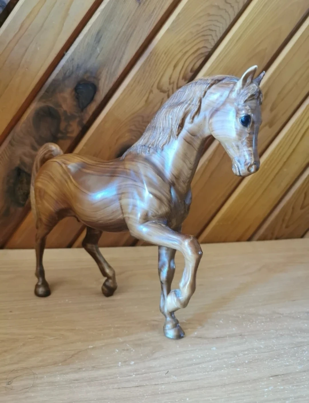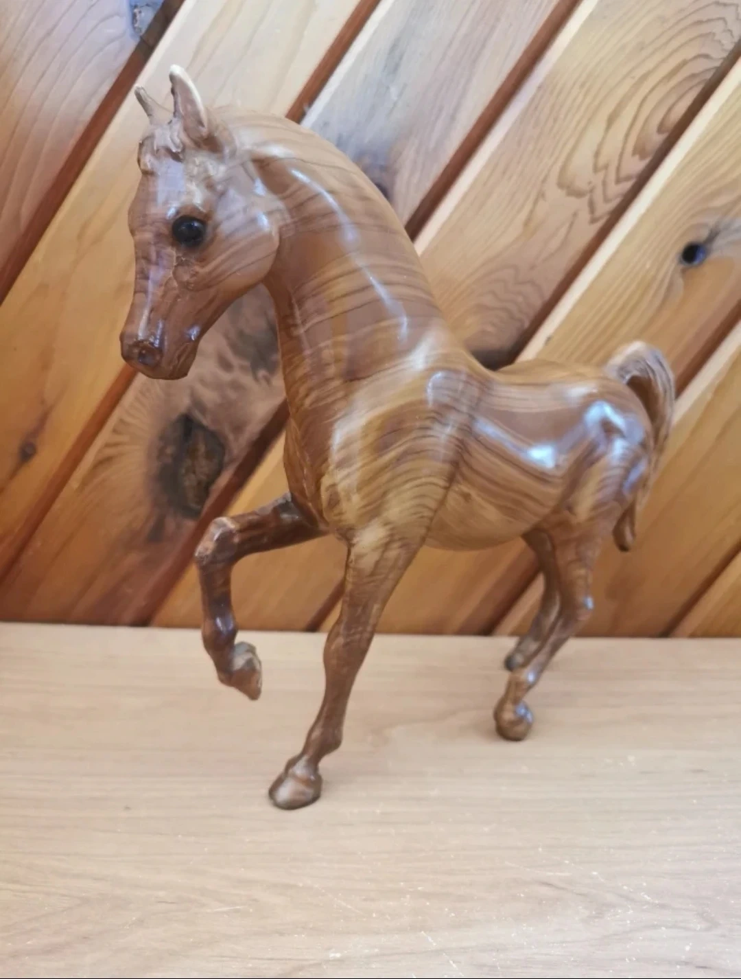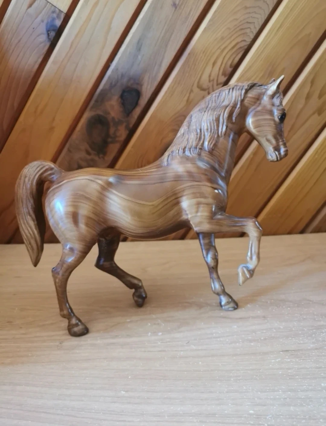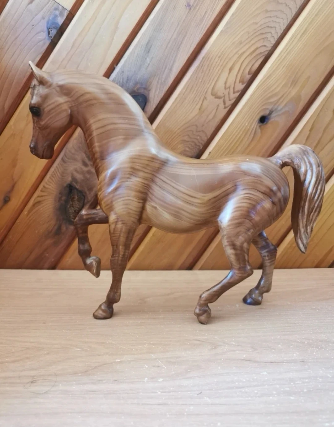 Crafted with exquisite attention to detail, this Breyer Classics model features a beautiful wood grain finish and lifelike anatomy that captures the grace and power of the Arabian horse. In excellent vintage condition, 8 inch tall, 10 inch long