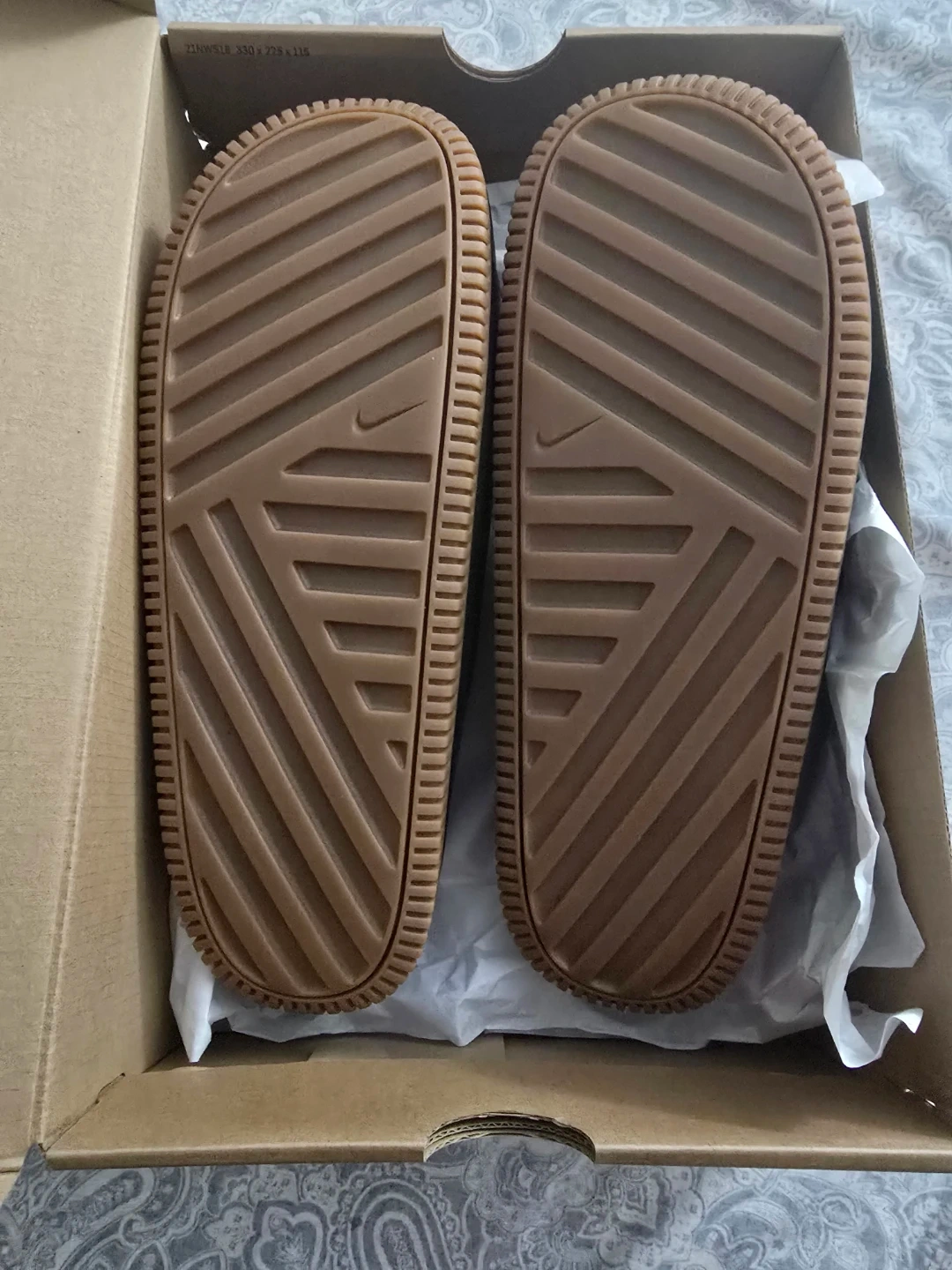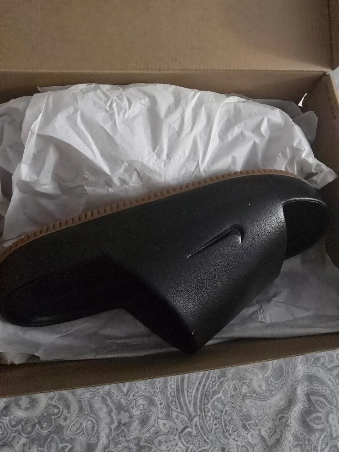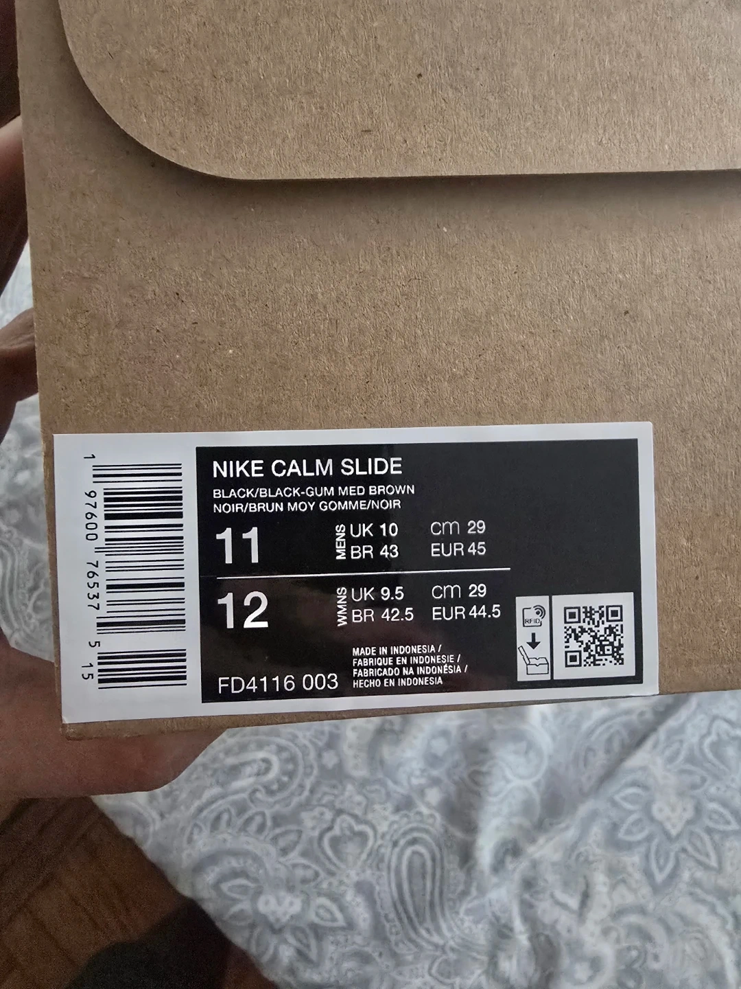 Selling a brand new pair of Nike Calm Slides in black, size 11! They come in the original box. These slides are super comfortable and perfect for everyday wear. The sole is a contrasting gum medium brown color. Grab them while they're here!